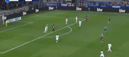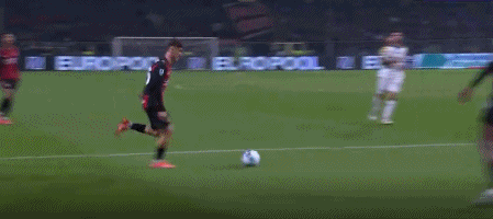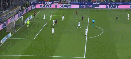 第45+1分钟,扳回一城,贝尔纳韦兜射入死角,米兰2-1